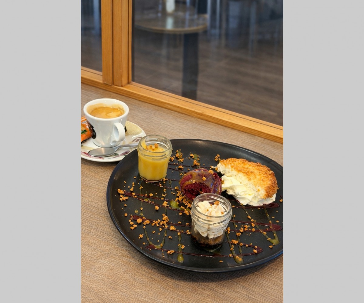 Pain burger, sauce tartare, chèvre, galette de légumes, miel, tomate cerises, salade, oignons rouges