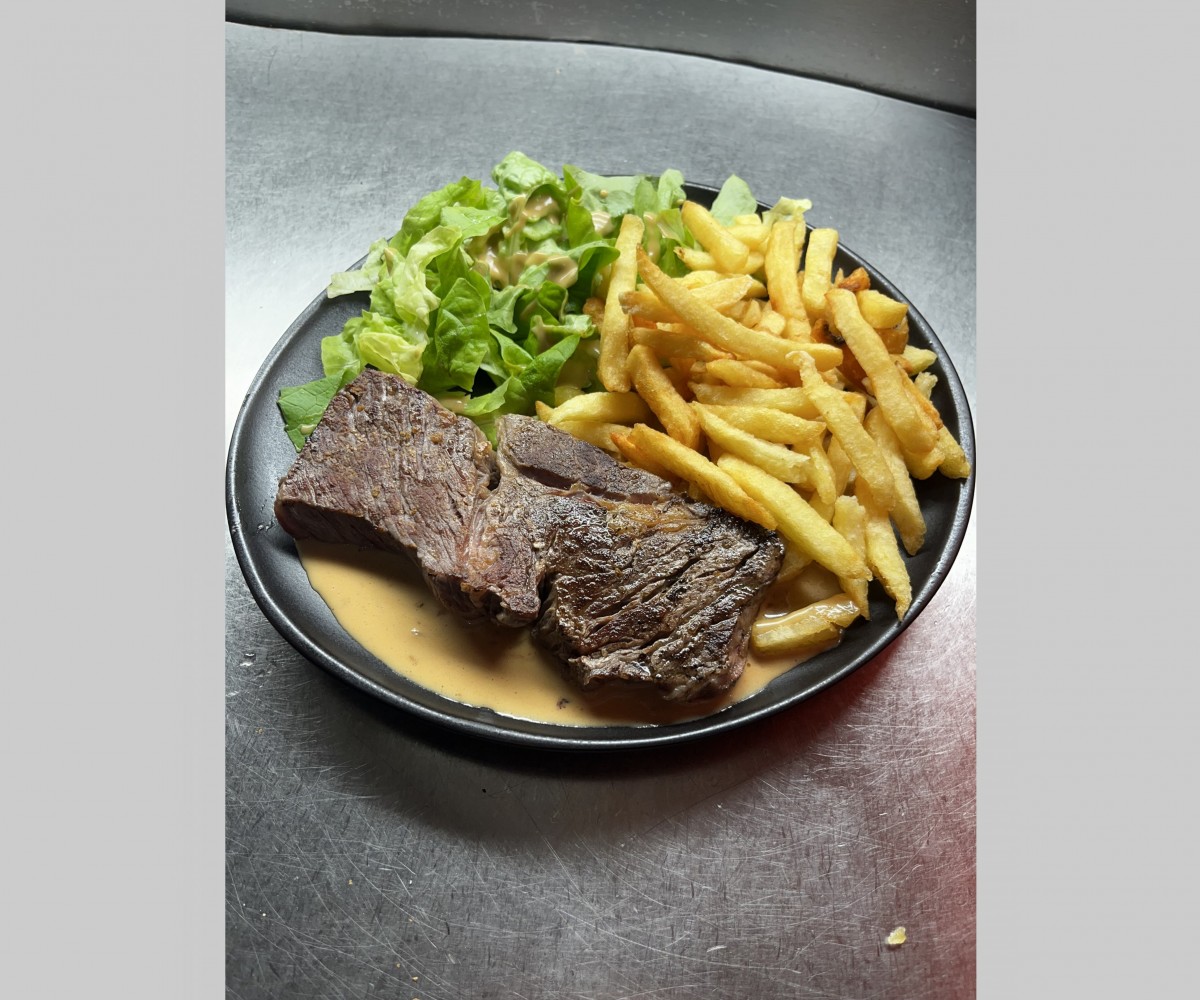 Nos burgers et nos viandes sont servis avec frites maison et salade verte.Sauce au choix en supplément: 1.20€