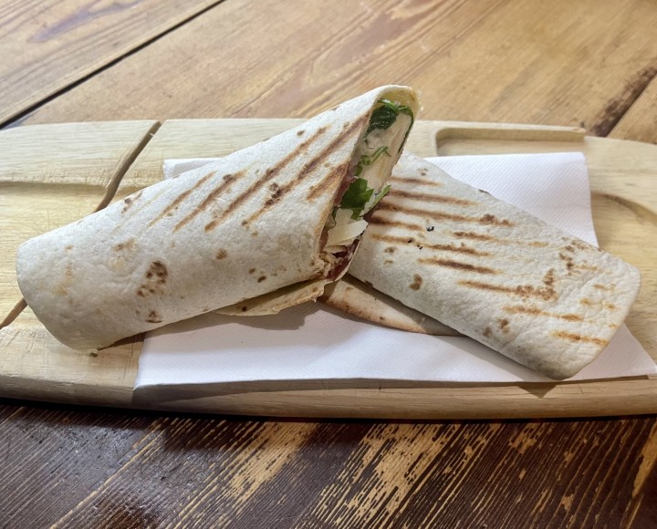 Bresaola, rucola, scaglie di grana padano, pomodoro e maioneseRustica