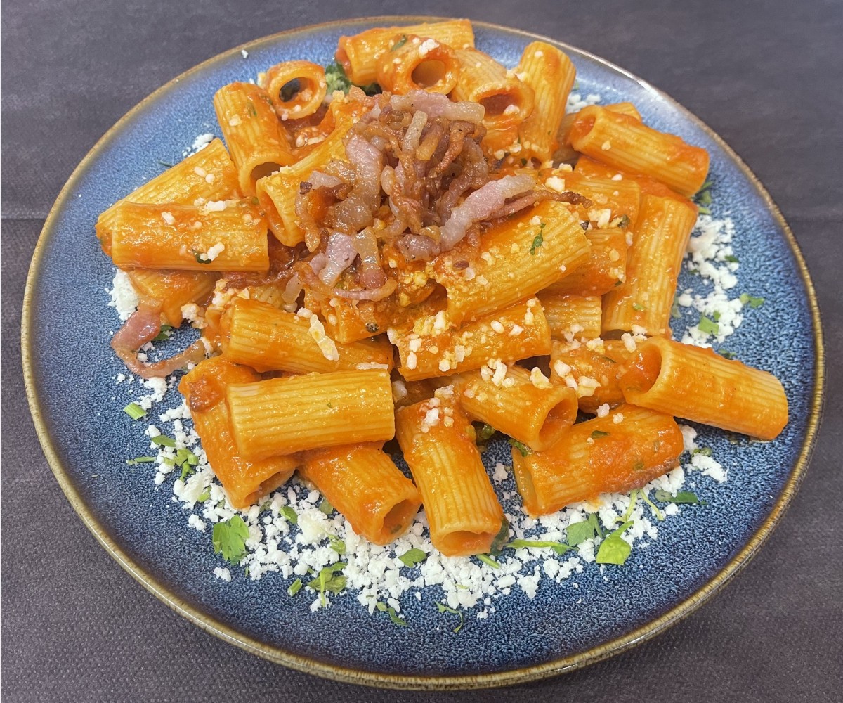 Con guanciale croccanteLinguine alla 'nduja, ricotta e pomodoro
