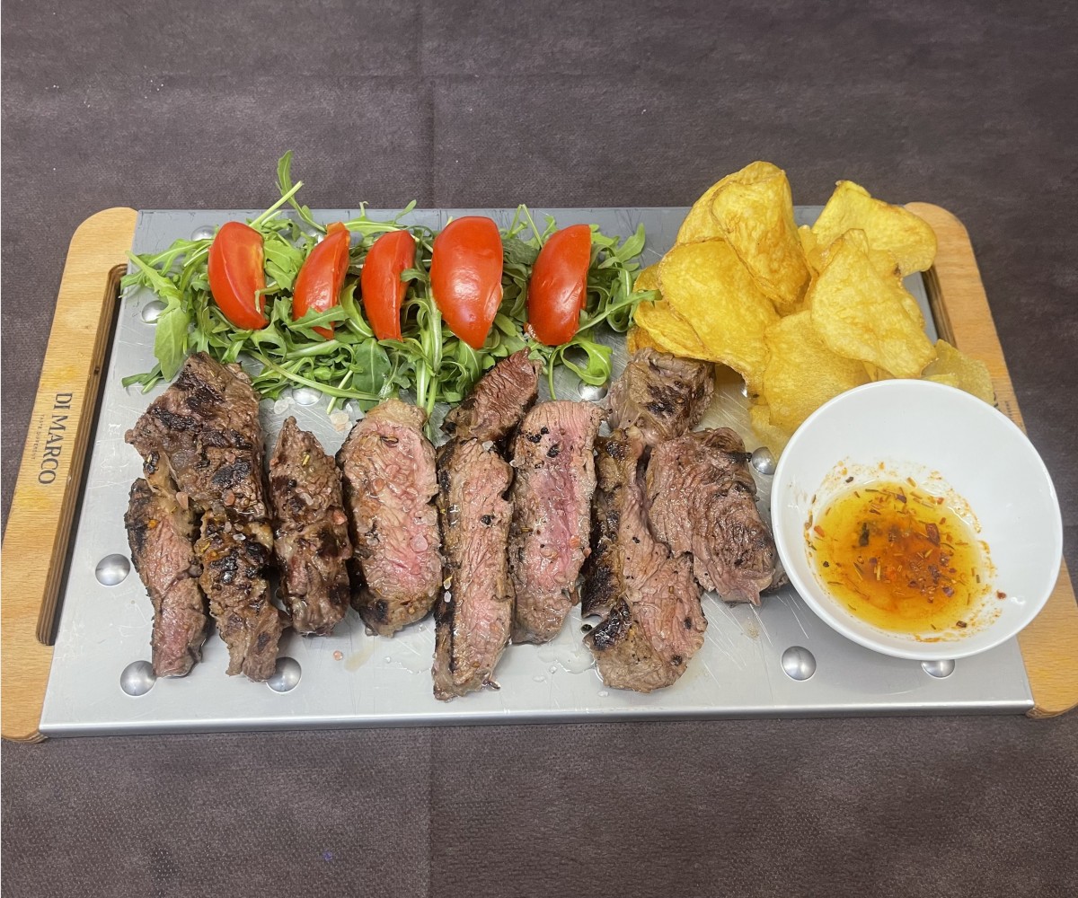 Tagliata di angus Australiano di circa 250gr. Questo piatto prelibato mette in risalto la qualità della carne. La carne Australiana è conosciuta soprattutto per la sua tenerezza e il sapore