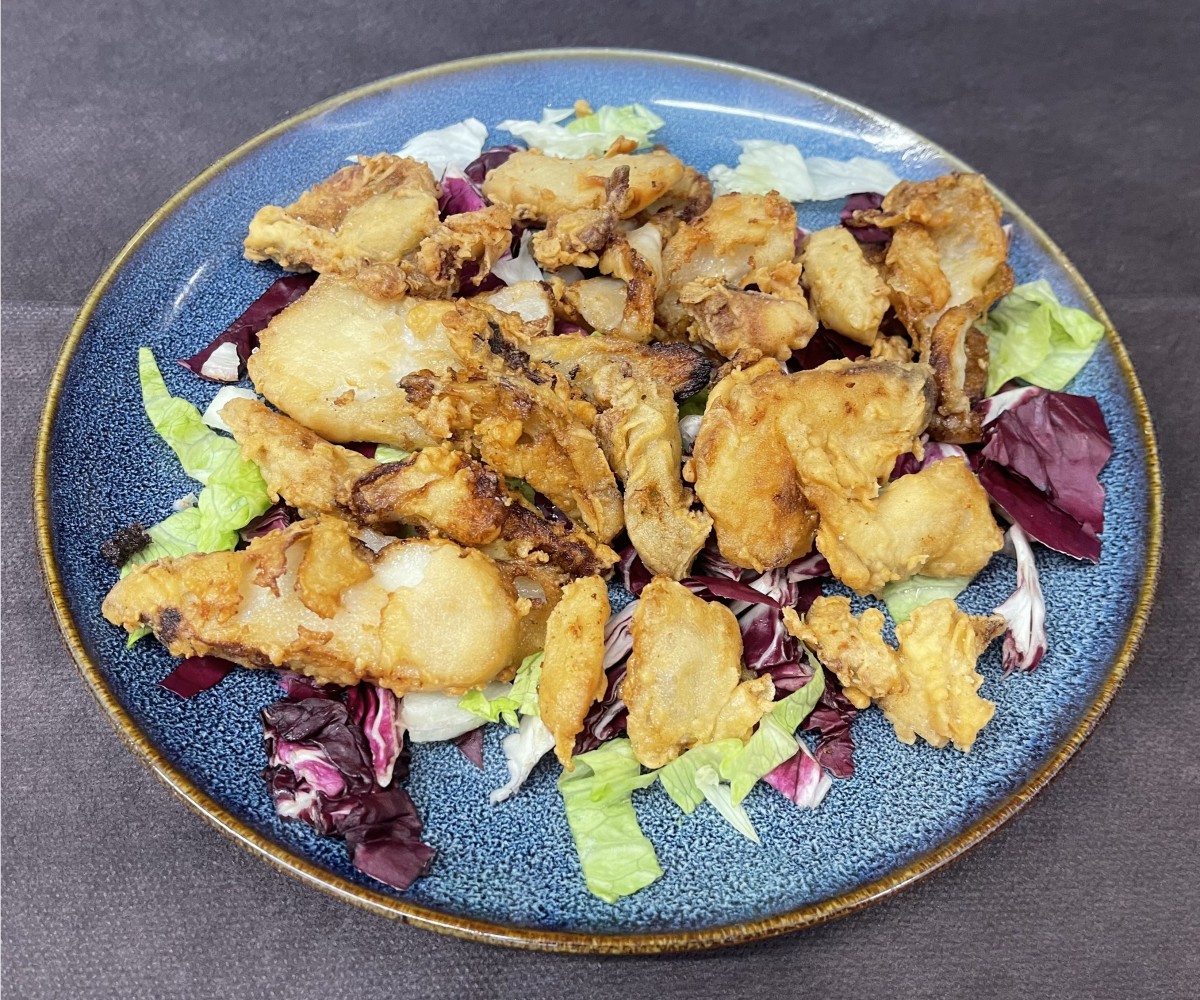 Funghi impanati e fritti su letto di rucola con glassa di aceto balsamicoAntipasti di Pesce caldi