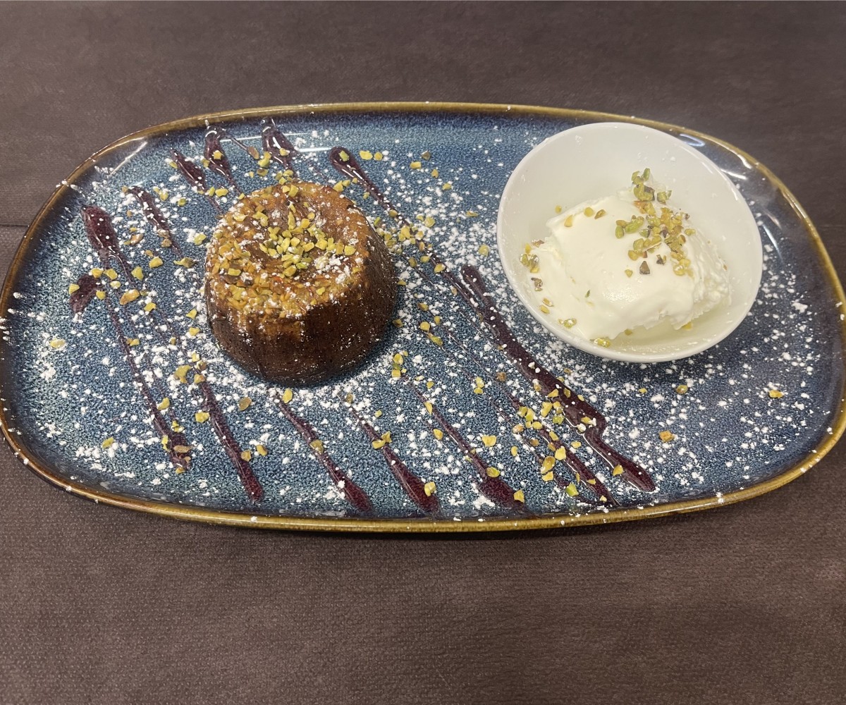 Trío de croquetas de patata fresca elaboradas íntegramente por nosotros, todas rellenas de una base de burrata fresca, pistachos picados, cebolla caramelizada y speck.