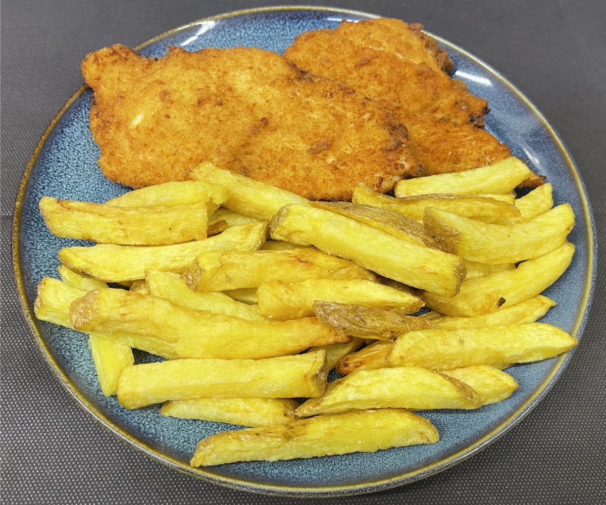 Avec un accompagnement de frites fraîches entièrement faites par nos soins