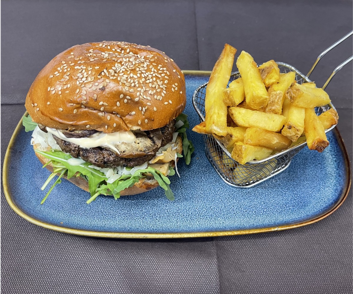 셰프가 직접 조리한 신선한 송아지 고기 버거에 루꼴라, 포르치니 버섯, 파마산 치즈, 시더 소스, 구운 가지를 곁들이고, 저희가 직접 만든 신선한 감자튀김을 사이드 메뉴로 제공합니다.