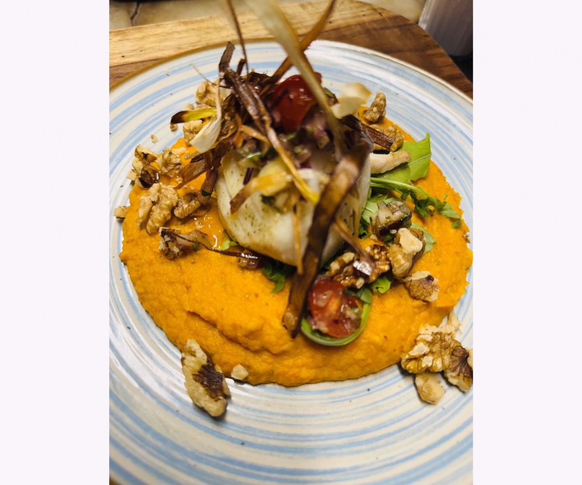 Croquettes de potimarron au parmesan et houmous,mogette et Tahini