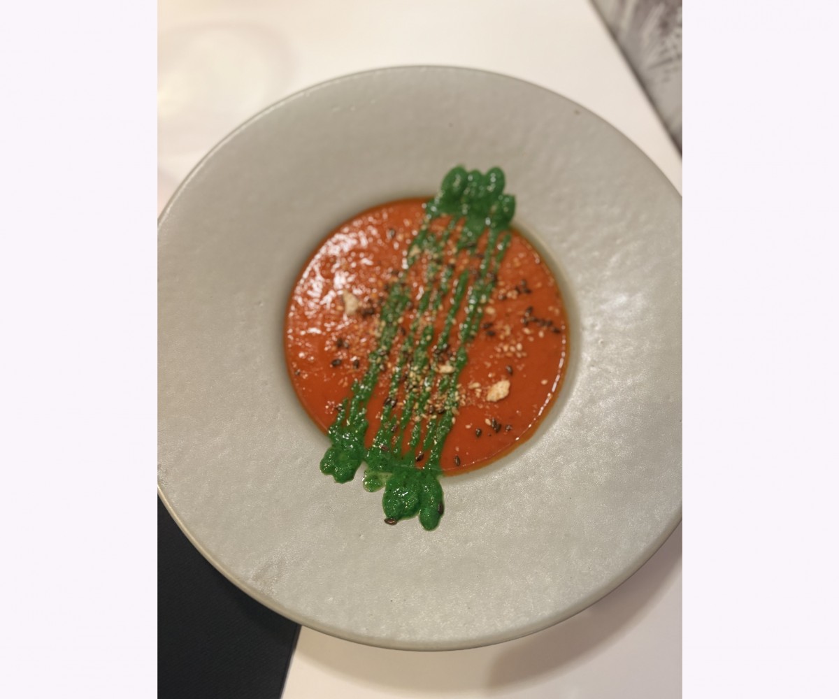 Brioche perdu au pesto, Burrata, pistache, cajous, et confiture de tomates séché.