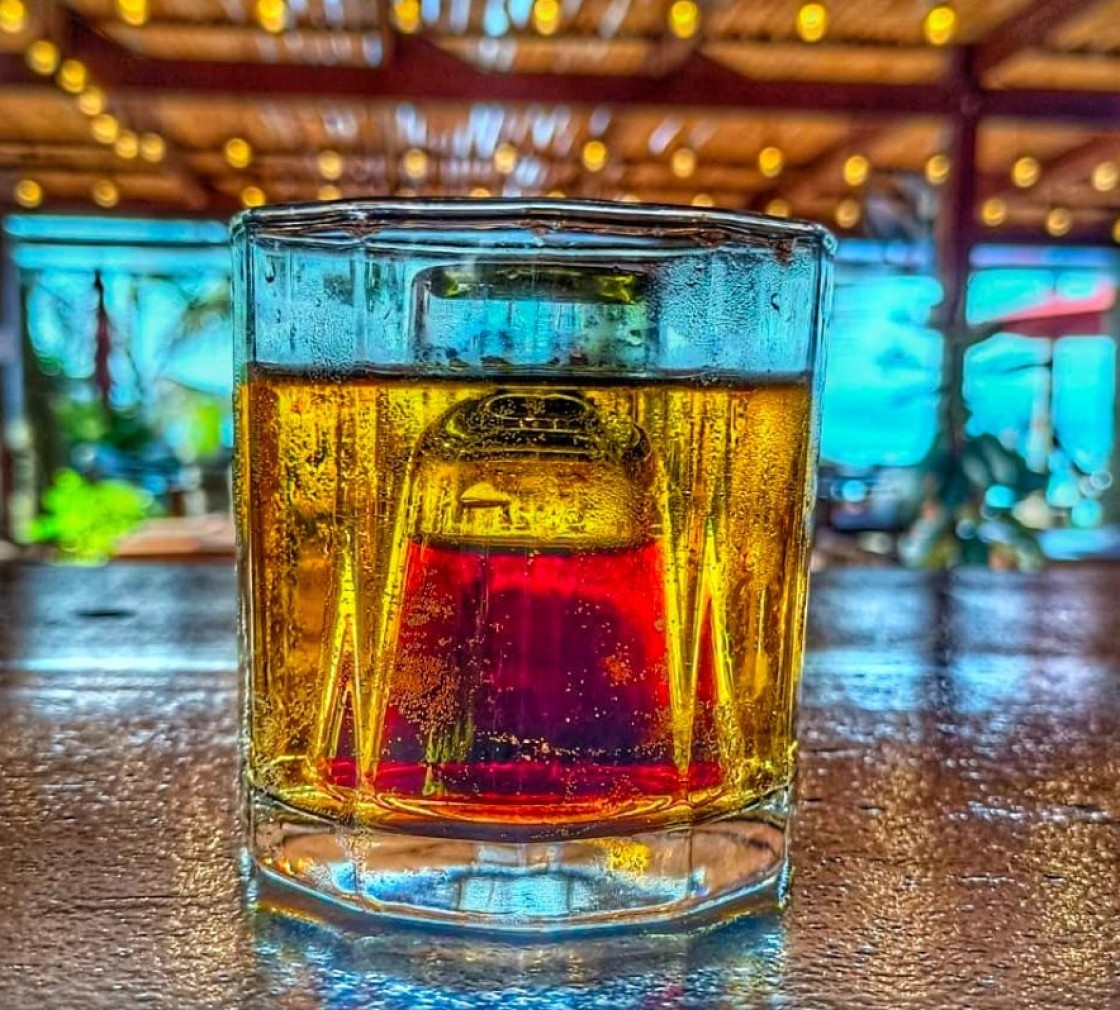 Klassisch: Weißer Rhum, dunkler Rhum, Orange Curaçao, Orangensaft, Ananassaft, Limettensaft, GrenadineOriginal: