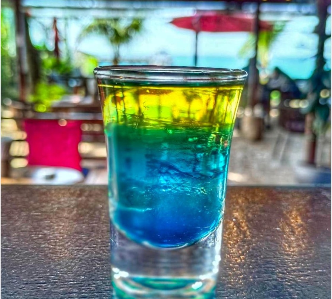 Weißer Rhum, Wodka, Gin, Blue Curaçao, Pfirsichschnaps, Limettensaft, Ananassaft