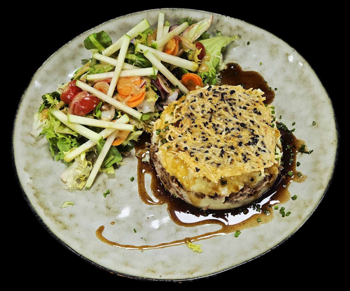 <h6 class='prettyPhoto-title'>Parmentier de canard marron et champignons, purée de PdT et céleri</h6>