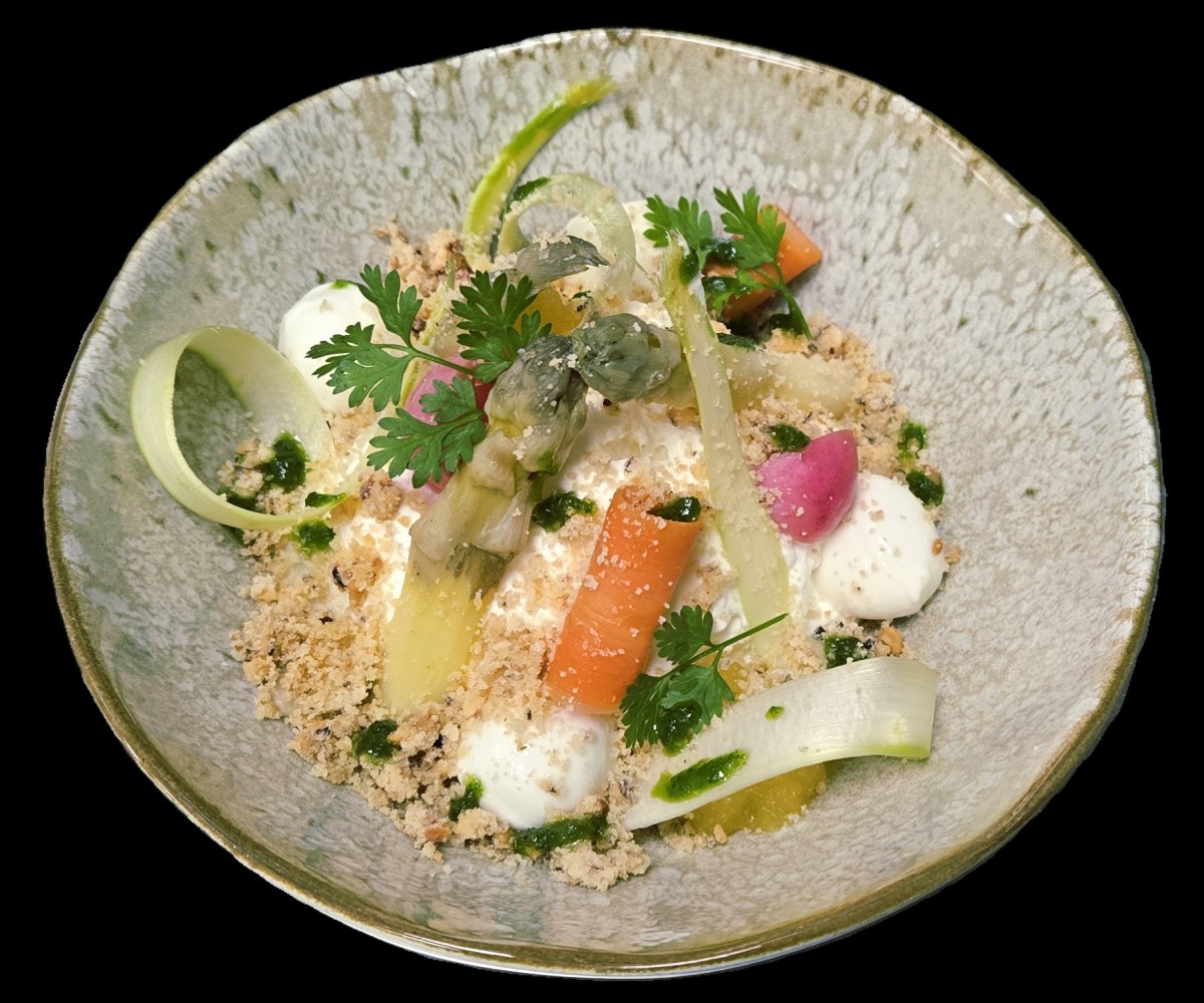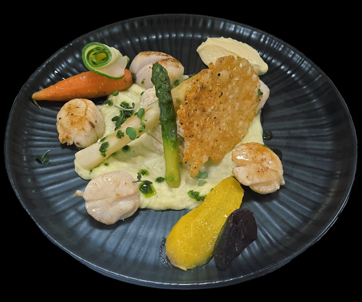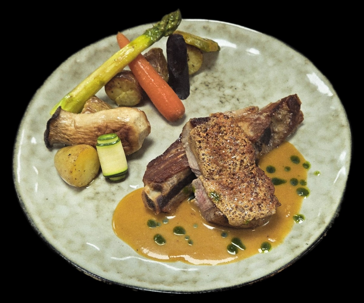 Filet de boeuf, betterave en crème et en chips, jus corsé
