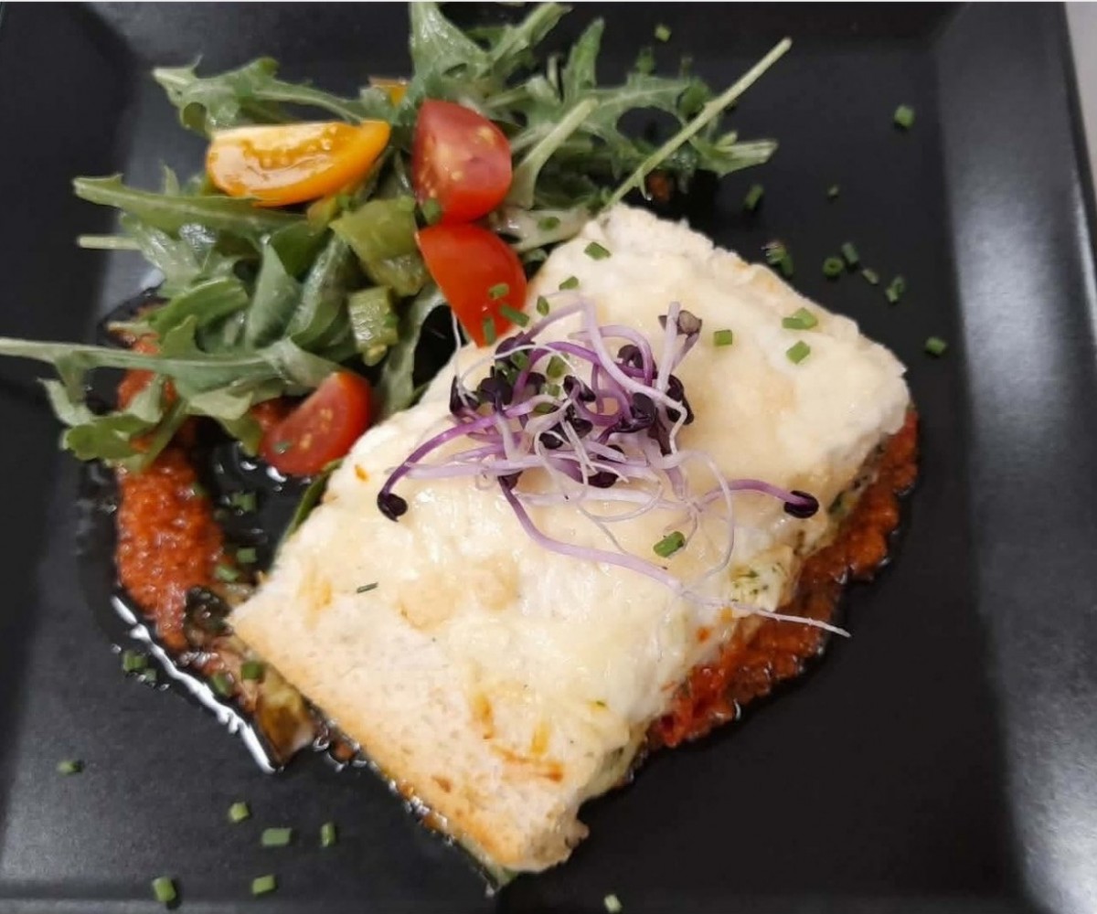 Croque Monsieur italien, mozzarella, courgette, pesto, tomates confites