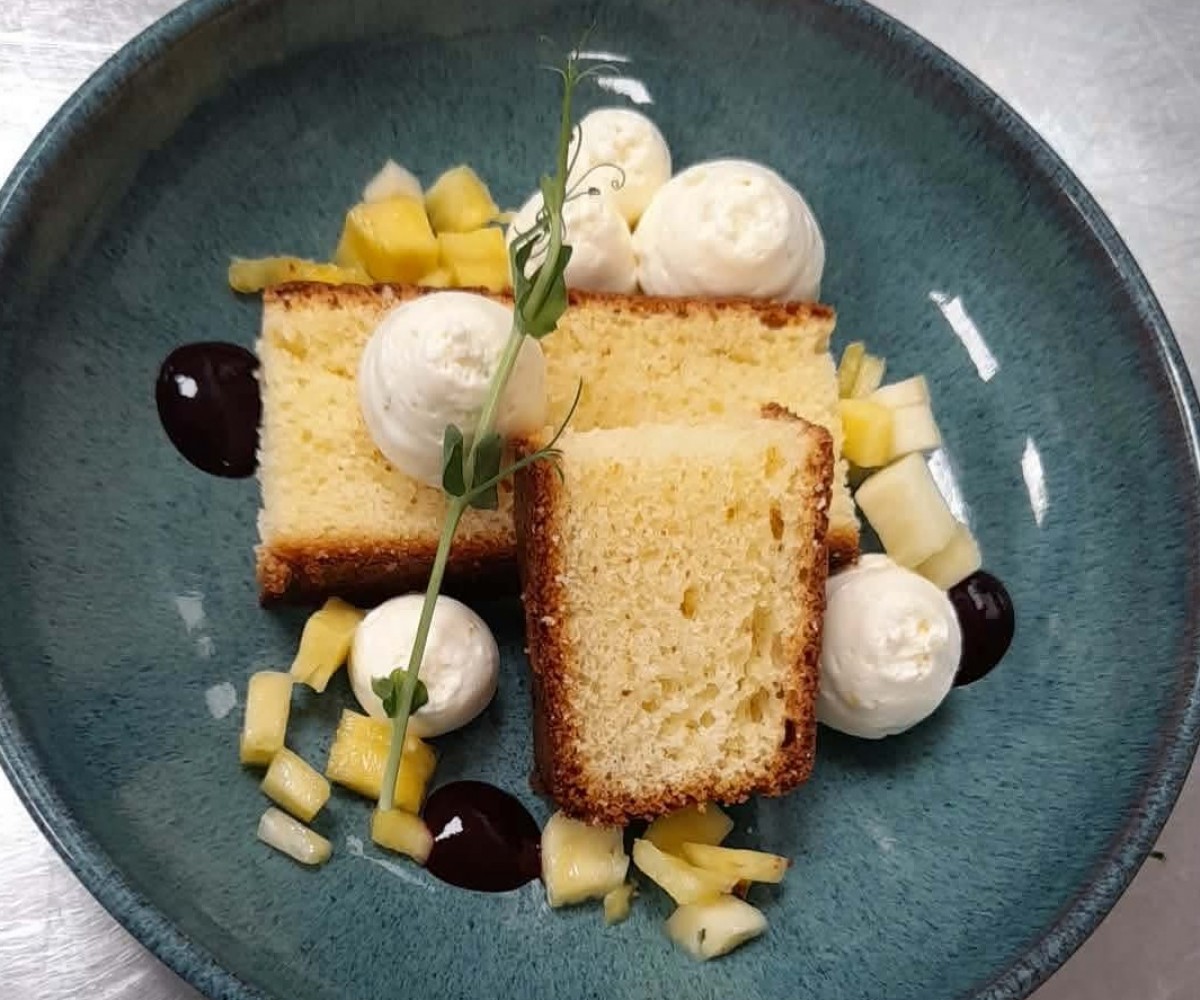 Gâteau moelleux au citron jaune, diplomate au citron vert et ananas
