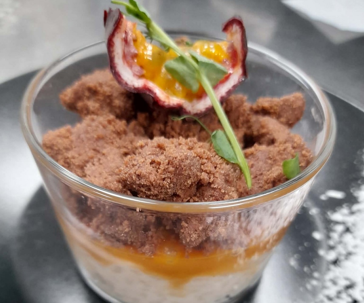 Ceviche de dorada, leche de tigre, maracuyá y mango