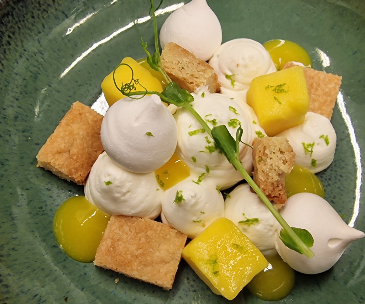 Noix de joue de boeuf confite, écrasé de pommes de terre et roulade de légumesデザート、ファイゼル、チーズ