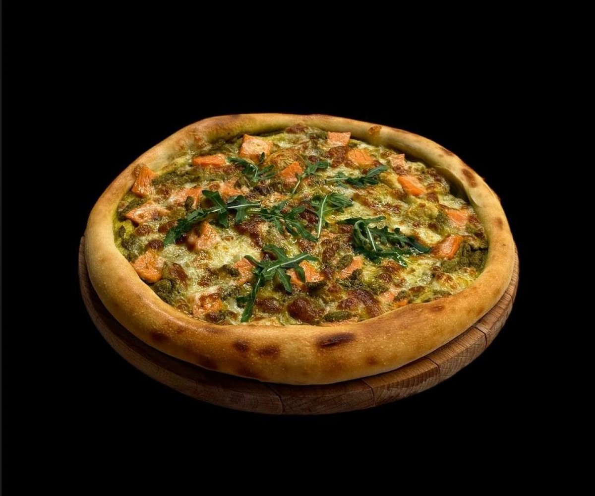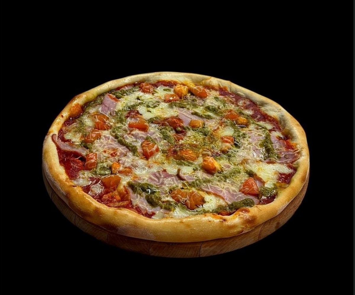 Tomatensauce, Mozzarella, Schinken, Pesto-Tomatensauce