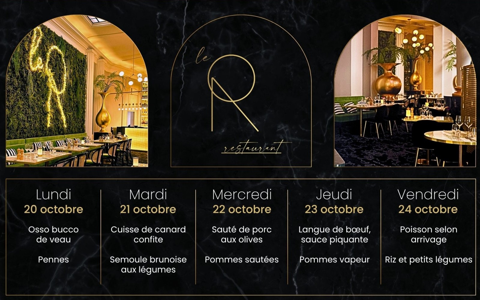 Nur am Sonntagmittag von 11:30 bis 13:30 Uhr verwöhnt Sie das R's Brunch mit süßen und herzhaften Gerichten, von der Vorspeise bis zum warmen Gericht, ohne den Schokoladenbrunnen zu vergessen! Fruchtsaft und Kaffee sind inklusive!