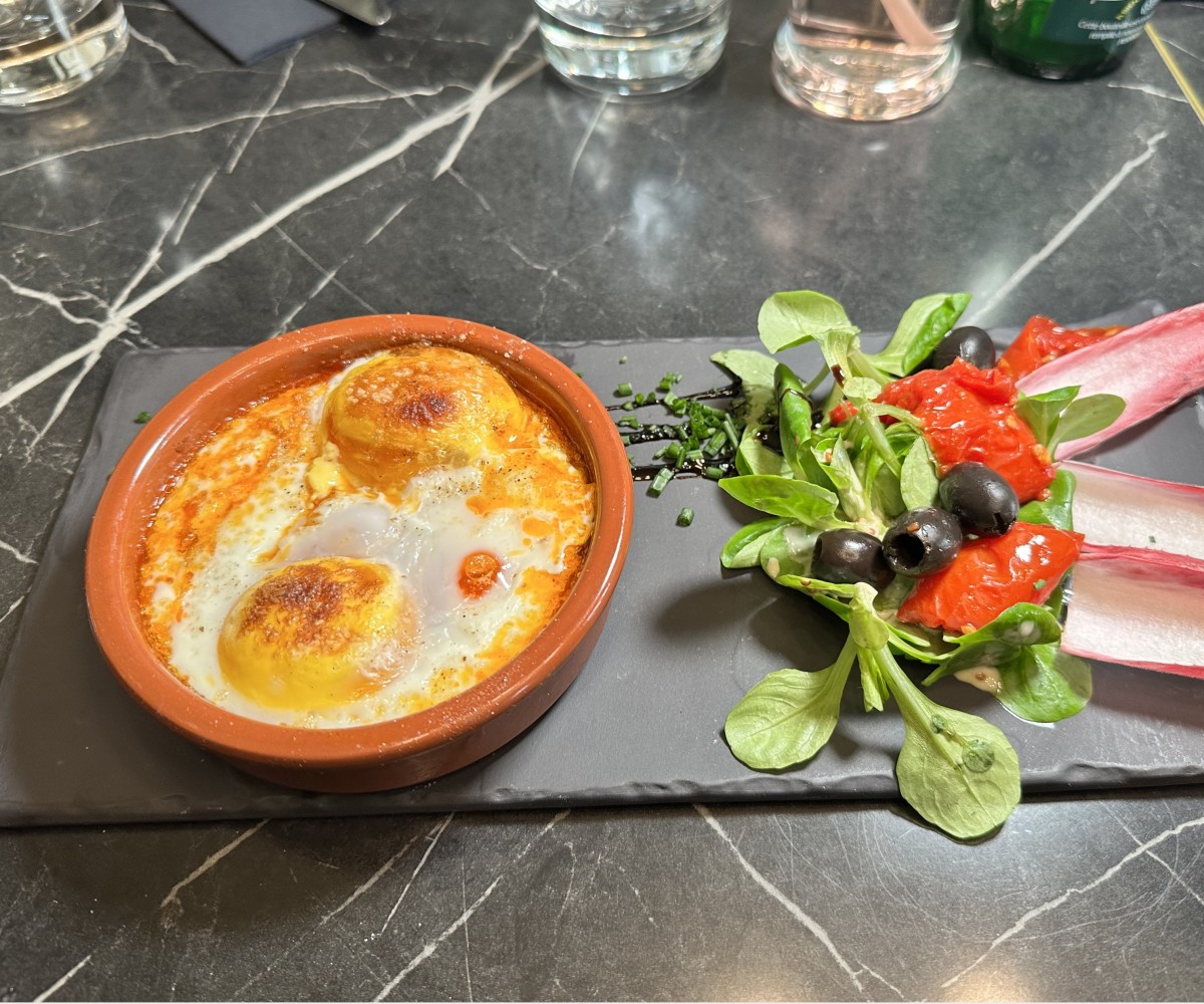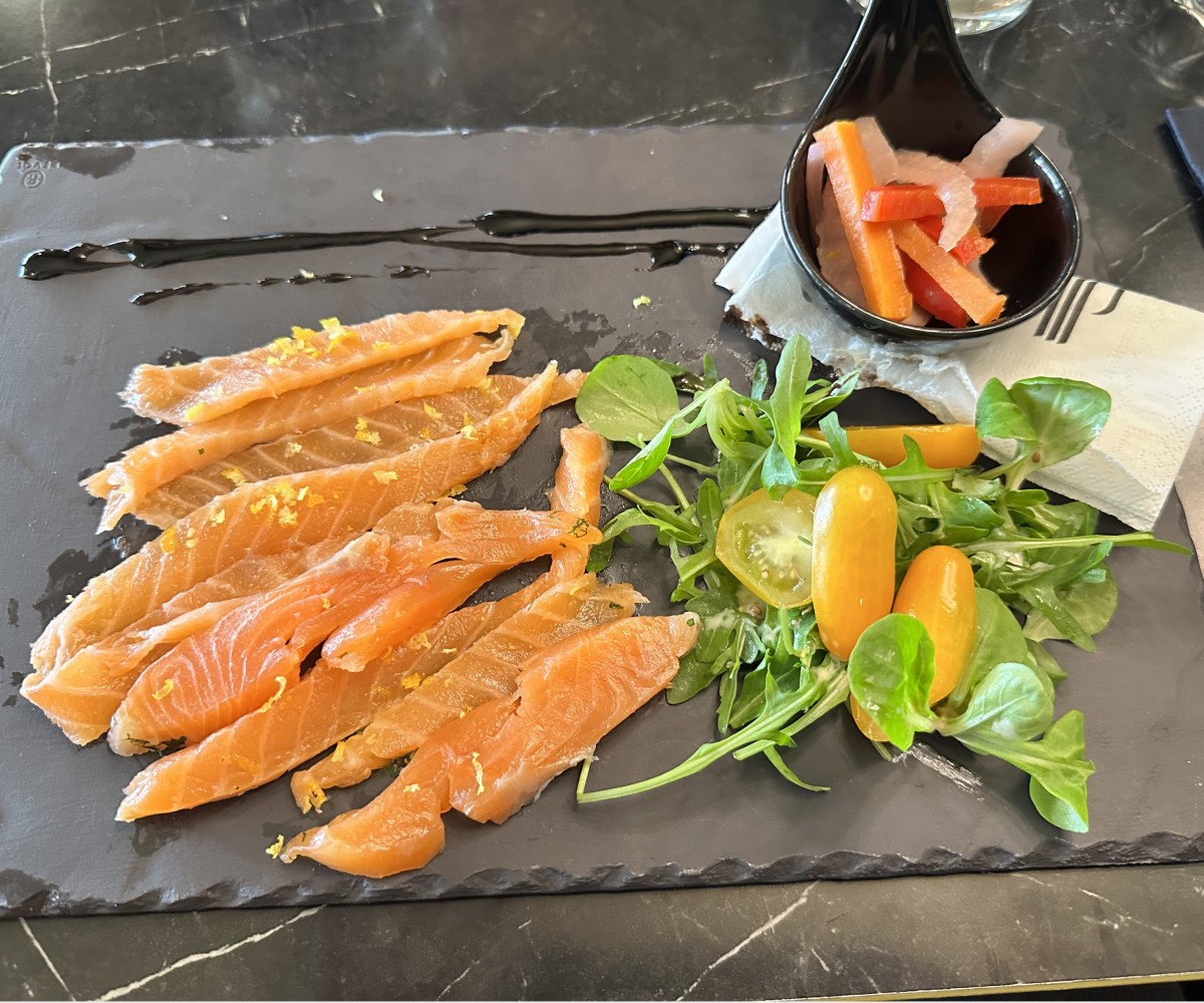 Entrée du jour : Cabécou rôti au miel, salade aux noix et coppa